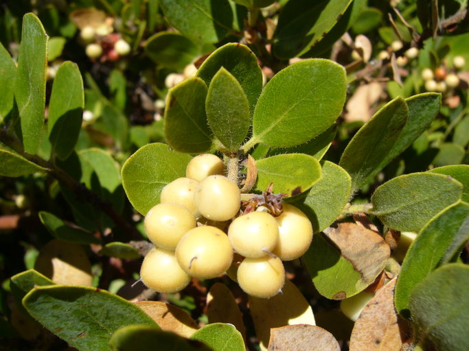Santa Cruz Island Manzanita (Arctostaphylos tomentosa ssp. subcordata) is a rare native shrub that grows in Southern and Central California, primarily in the Channel Islands region. It tends to grow in rocky or sandy soils and slopes, at elevations from 0-3600 feet.