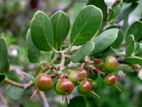 Hooker's Manzanita comes in a number of subspecies and cultivars. Two low growing, mounding forms include ssp. hearstiorum and Monterey Carpet (about 1 foot tall and 6 feet wide). Upright forms can reach 6 feet in height. In general, this species prefers full sun within a few miles of the coast, and part shade when more inland. This plant will tolerate some summer water (1-2x per month). It prefers dry, well drained, acidic soil and is slow growing. It is a great candidate for a rock garden or coastal bluff garden.