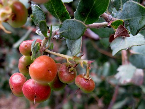 Arctostaphylos pajaroensis is a species of manzanita known by the common name Pajaro manzanita. It is endemic to California, where it is known mainly from Monterey County. Historical occurrences have been noted in Santa Cruz and far western San Benito Counties; these may no longer exist. Most of the extant populations are located in the hills south of the Pajaro River Valley. It is a member of the chaparral plant community. This is an erect shrub growing at least a meter tall and known to exceed four meters in height. It has shreddy red or grayish bark with woolly hairs and long white bristles on its smaller twigs. The dense foliage is made up of gray-green, reddish-tinted leaves with smooth, toothed, or rolled edges. They are oval to somewhat triangular in shape and 2 to 4 centimeters long. The shrub flowers in the winter, bearing large loose flower clusters of pink to nearly white urn-shaped flowers. The fruit is a drupe about 7 millimeters wide.