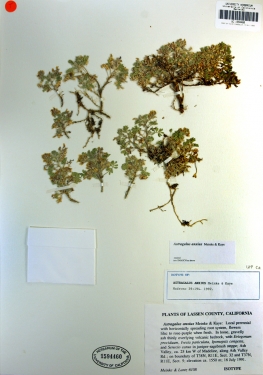 Astragalus anxius is a rare species of milkvetch known by the common names troubled milkvetch and Ash Valley milkvetch. It is endemic to northern Lassen County, California, where it grows in the volcanic soil of the Modoc Plateau. It was formally described in 1992. There are only 6 known occurrences, some of which are threatened by livestock trampling. Astragalus anxius is a perennial herb forming a matted patch of slender, delicate stems no longer than 20 centimeters. It is coated thinly in wavy hairs. The leaves are a few centimeters long and made up of several leaflets. The inflorescence contains 7 to 15 pealike flowers. Each flower is bicolored, the lower petals usually white and the upper banner petals purple to purple-veined white. The fruit is a hairy, oval-shaped legume pod up to half a centimeter long which dries to a papery texture. Astragalus anxius is a perennial herb forming a matted patch of slender, delicate stems no longer than 20 centimeters. It is coated thinly in wavy hairs. The leaves are a few centimeters long and made up of several leaflets. The inflorescence contains 7 to 15 pealike flowers. Each flower is bicolored, the lower petals usually white and the upper banner petals purple to purple-veined white. The fruit is a hairy, oval-shaped legume pod up to half a centimeter long which dries to a papery texture.