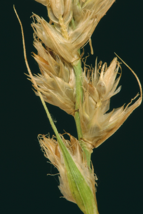 Carex fracta is a species of sedge known by the common name fragile sheath sedge. It is native to the western United States from Washington to California, where it grows in moist to dry areas in mountain forests and meadows. This sedge produces dense clumps of stems sometimes exceeding a meter tall. The leaves are attached to the stem with a characteristic thin, membranous sheath. The inflorescence is a dense or loose cluster of light green to gold spikes. Some spikes occur lower on the stem as well. The flowers are covered in light colored scales.