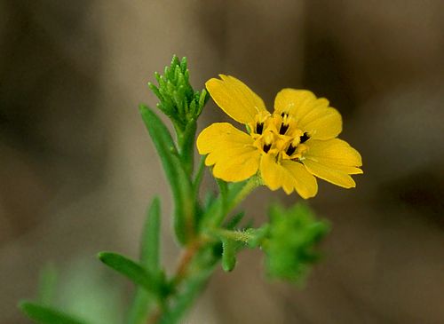 Clustered Tarweed (Hemizonia fasciculata) is a ative annual herb in the Asteraceae (Sunflower) family. It was formerly classified as Hemizonia fasciculata, and some sources may still refer to it that way. It grows in southern and central California from the coast into the west slope of the mountains, from San Luis Obispo County southwards into Baja. It tends to grow in grasslands, woodlands and coastal sage scrub at elevations from sea level to about 4,000 feet. Its long blooming season makes it a dependable source of color in wildflower gardens. The composite flowers have 5 ray flowers and six disk flowers. It is sometimes included in wildflower seed mixes and is useful in restoration projects.