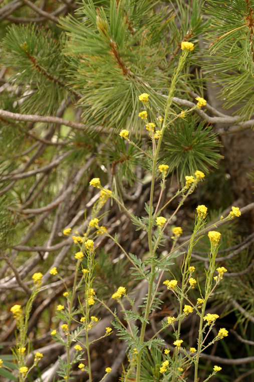 Descurainia incana is a species of flowering plant in the mustard family known by the common name mountain tansymustard. It is native to much of North America, including most of Canada, the western United States, and Baja California. It is known from many types of habitat. It is a biennial herb with a slender, greenish, often hairy stem sometimes exceeding a meter tall. The leaves are narrowly to widely oval in shape, the lower ones lobed and sometimes compound, the upper generally unlobed. The mustardlike inflorescence is a series of developing fruits beneath an elongating cluster of small bright yellow flowers. The fruit is a thin, pointed silique up to 2 centimeters long.