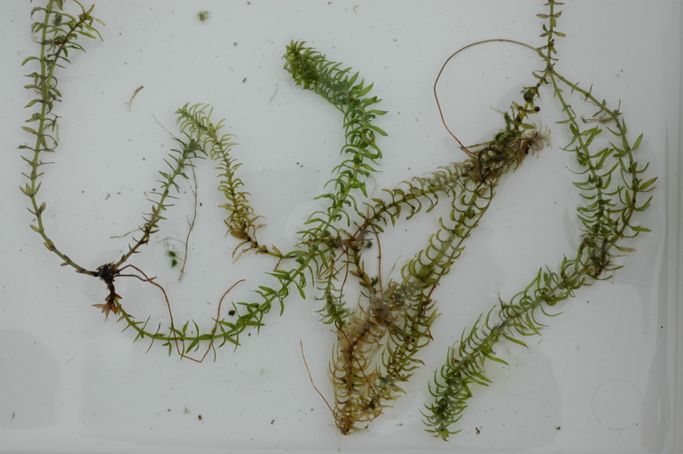 Elodea nuttallii is a species of waterweed known by the common name western waterweed or Nuttall's waterweed. This is a perennial aquatic plant which is native to North America where it grows submersed in lakes, rivers, and other shallow water bodies. It is also found in Eurasia, where it is commonly weedy; it is not known as a weed species in its native range. It is sometimes used as an aquarium plant. The first european evidence of Elodea nuttallii was probably 1914 in England, though it had been determined wrongly as Hydrilla verticillata. It is a invasive species to Europe and is now covering practically the whole continent.