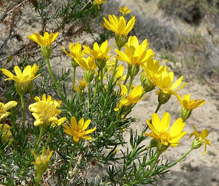 Ericameria linearifolia is a flowering plant in the daisy family known by the common names narrowleaf goldenbush and interior goldenbush. This is a standard bushy aster shrub which bears radiant yellow daisy flowers on long stems. It is native to the drier areas of California from the Central Valley south and Nevada, Utah, and Arizona.