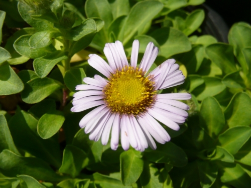 Horticultural selection from Erigeron glaucus. Cape sebastian seaside Daisy is the smallest of the seaside daisies which makes it an ideal plant for small gardens, containers, borders and butterfly gardens. In spring, summer and into fall this compact flower will have plentiful daisy type blooms, 1" diameter, lavender petals with yellow centers. Some supplemental irrigation in summer will keep this plant looking it's best. Feel free to dead head the flowers and cut back the flower stems to about 1" in winter after flowering. This plant will tolerate sand and also does well in clay soils. We have found Cape sebastian to take cold temperatures down to about 12F and tolerate summer heat. On the coast plant in sun or light shade, inland you will need to provide at least afternoon shade. The pollinators and butterflies adore this plant, and if seeds are allowed to form after flowering the song birds will also feast! Tolerates almost any soil type. Prefers sun in coastal sites, and part shade in inland sites. Selected for the garden.