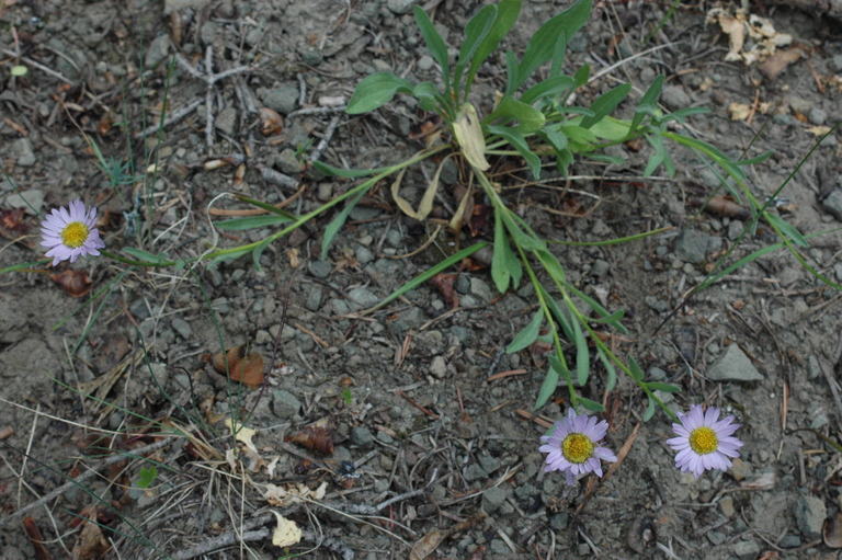 Erigeron maniopotamicus is a rare species of flowering plant in the aster family known by the common name Mad River fleabane. It is endemic to northwestern California, where it is known from only four locations in Humboldt and Trinity Counties. Erigeron maniopotamicus grows in open areas in forest, woodland, and meadow habitat along the path of the Mad River, generally in barren areas without much plant cover. The soils are rocky and tan in color and occur near areas of serpentine soils, but the plant does not occur on the serpentine soil.