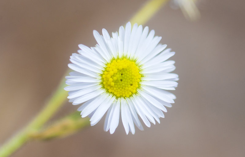 Erigeron multiceps is a species of flowering plant in the daisy family known by the common names Kern River daisy and Kern River fleabane. It is endemic to California, where it is known mostly from the Kern Plateau in the southern High Sierra Nevada of eastern Tulare County. It is a perennial herb growing a hairy stem up to about 20 centimeters tall from a taproot and caudex. The base of the stem is surrounded by oblong leaves 2 to 5 centimeters long, and there are some smaller leaves along the length of the stem. The inflorescence produces hairy, glandular flower heads filled with yellow disc florets and a fringe of up to 125 thin, flat white to purple-tinged ray florets. The fruit is an achene with a pappus of bristles.