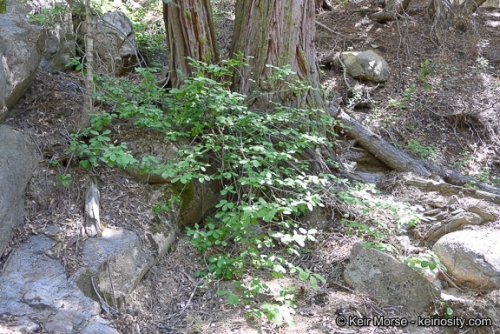 Stream banks, forested canyons and other moist, shaded places at elevations from sea level to 7, 000 ft.