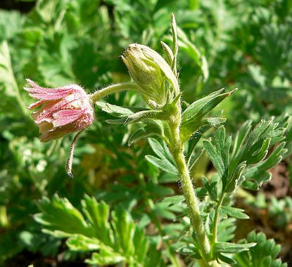 Geum triflorum, (three-flowered avens, old man's whiskers, or prairie smoke) is a spring perennial herbaceous plant of North America from northern Canada to California and east to New York. Some Plateau Indian tribes used three-flowered avens to treat tuberculosis.