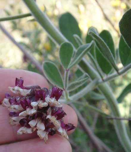Otay Mtn. Lotus is a rare native perennial herb in the Fabaceae (Legume) family. It is one of two recognized varieties of Hosackia crassifolia found in California. It is found primarily in the Otay Mountain area of San Diego County and adjacent Baja, although there is also a disjunct population reported in San Luis Obispo County. The more common var. crassifolia also occurs in the same area of San Diego. Otay Mountain Lotus tends to grow in chaparral or disturbed areas at elevations from 1,000 to 4,000 feet. This plant is rarely used in gardens, a little information is available on its cultural tolerances and requirements.