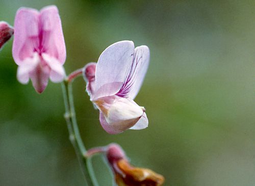 Lathyrus vestitus is a species of wild pea known by the common name Pacific pea. It is native to western North America, where it is mostly found in the forests, woodlands, and chaparral of California. The ranges of some subspecies extend into Oregon and Baja California. This is a perennial pea vine which varies in appearance across subspecies. Leaves are made up of several leaflets of various shapes up to 4 or 5 centimeters long. The leaves usually bear coiling tendrils and the stipules may be large or small. The flower cluster is a showy array of up to 15 pea flowers, sometimes densely packed together, and usually some shade of bright violet, or light to medium purple, or white.