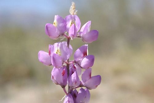 Lupinus arizonicus (Arizona lupine) is a flowering plant in the family Fabaceae, native to the Mojave and Sonoran Deserts, where it can be found growing in open places and sandy washes below 1100 meter altitude. It is common around Joshua Tree National Park and Death Valley National Park in California. It is an annual plant growing to 10-50 centimeter in height. The leaves are palmately compound with 6-10 leaflets, each leaflet 1-4 centimeter long and 5-10 millimeter broad, on a 2.5-7 centimeter long petiole. The flowers are magenta to dark pink, 7-10 millimeter long, with 20-50 or more flowers in a tall spike.