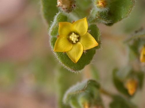 Mentzelia micrantha is a species of flowering plant in the family Loasaceae known by the common name San Luis blazingstar. It is native to the coastal mountain ranges of western North America from just north of the San Francisco Bay Area to Baja California. It grows in several types of mountain slope and hillside habitat, including chaparral and sometimes disturbed areas. This is an annual herb producing an erect green stem 10 to 80 centimeters in maximum height. The leaves are toothed or wavy along the edges, the longest in the basal rosette up to 18 centimeters long and those higher on the stem reduced in size. The flower cluster is an open array of several clusters of small flowers, each flower accompanied by a single wide leaf sometimes larger than the flower itself. The five yellow petals of the flower are under half a centimeter long. The fruit is a narrow cylindrical utricle containing several tiny, pyramidal seeds.