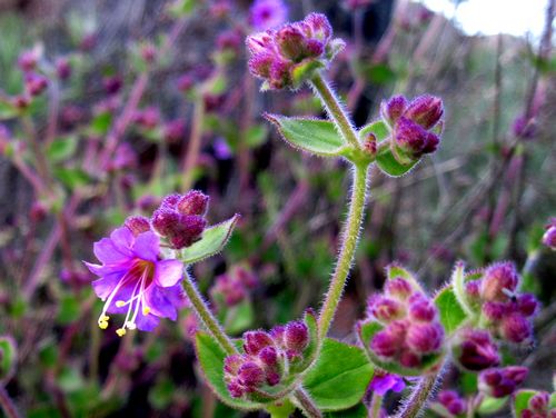 Desert wishbone bush (Mirabilis laevis) is a low-growing, drought-tolerant shrub in the Four O'Clock family (Nyctaginaceae). This species, recently redefined, now includes several varieties previously classified as separate species, such as the well-known California chaparral plant Mirabilis californica. There are currently five recognized varieties, all found in the southern half of California.