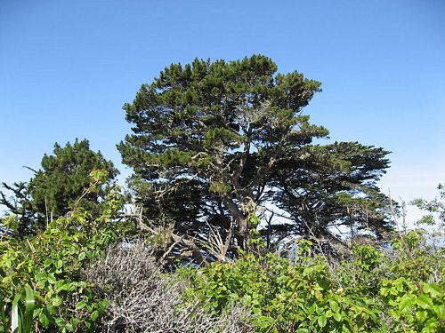 In its native range, Monterey Pine is associated with a characteristic flora and fauna. It is the co-dominant canopy tree, together with Cupressus macrocarpa which naturally occurs only in coastal Monterey County.