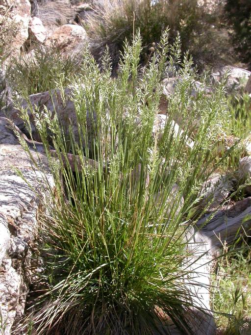 Muttongrass (Poa fendleriana) is a native grass that grows in Northern, Southern and Central California, primarily in the Desert Mountains and High Sierra Nevada regions. It is moderately fast growing and moderately long-lived. It grows in an upright form to a height of 2 feet, with active growth during the spring. Flowers are yellow and bloom in the early spring. Leaves are medium green and deciduous. It tends to grow in slopes, at elevations from 3200-10200 feet.