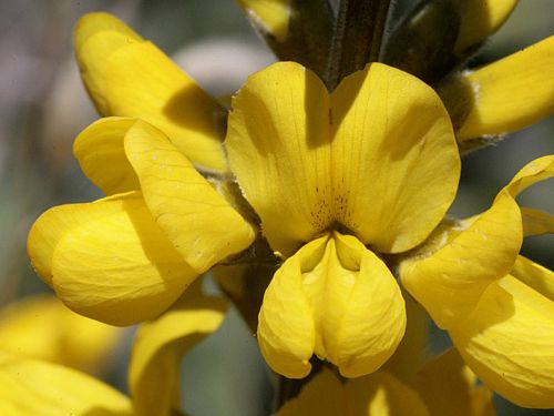 Thermopsis macrophylla is a species of flowering plant in the legume family known by the common names Santa Inez goldenbanner and Santa Ynez false-lupine. It is endemic to Santa Barbara County, California, where there are 500 to 2500 individuals remaining in the Santa Ynez Mountains. Only two occurrences have been confirmed recently, but the appearance of plants in coming seasons will depend on wildfire activity in the region, because plants spring up from the dormant seed bank after fire. All the known populations occur on wildlands within the Los Padres National Forest. The plant grows in chaparral on sandstone soils among chamise (Adenostoma fasciculatum), Eastwood's manzanita (Arctostaphylos glandulosa), and chaparral whitethorn (Ceanothus leucodermis). This species once included several other species of Thermopsis, but in 1994, the others were separated out and elevated to species status, and the name T. macrophylla was applied to this rare variety limited to the Santa Ynez Mountains. This is a rhizomatous perennial herb growing up to 2 meters tall and one wide. It produces up to ten inflorescences each bearing up to 100 bright yellow flowers up to 2 centimeters long each. The fruit is a legume pod containing six to eight seeds. The seeds have very hard coats and must be scarified by fire until they reach 80 degreesC if they are to germinate.