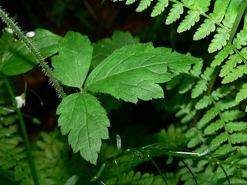 Tiarella trifoliata, commonly called threeleaf foamflower, laceflower, or sugar-scoop, is a dicot in the family Saxifragaceae. It is native to the low to moderate elevation moist forests of western North America, from northern California to Montana and western Canada. Tiarella trifoliata is a perennial herb that grows in the late spring. The flowers are bell-shaped, white, solitary from an elongate, leafless panicle. The calyx lobes are 1. 5-2. 5 mm and petals are 3-4 mm. Basal leaves are 15-80 mm long and up to 120 mm wide, trifoliate or palmately 3- to 5-lobed. Cauline leaves are infrequent and much smaller. Varieties: There are three varieties of T. trifoliata:T. trifoliata var. trifoliata, which has leaves that are irregularly lobed, with coarse teeth. T. trifoliata var. unifoliata, which has simple leaves. T. trifoliata var. laciniata, which is confined in its range from Washington only as far north as Vancouver Island, and has deeply lobed leaves.